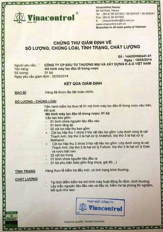 Nhiều khách hàng lo lắng máy lọc rượu mình mua có đúng nguồn gốc, máy đã được kiểm định chất lượng chưa? Hay rượu sau khi lọc có đảm bảo các hàm lượng độc tố về mức an toàn theo quy định của bộ Y Tế.