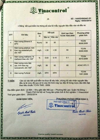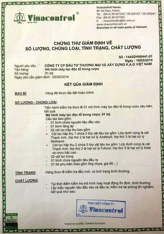 – Sản phẩm máy lọc rượu khử andehit và các hàm lượng độc tố trong rượu sau khi lọc đã được kiểm định bởi chứng nhận bởi tổ chức Vinacontrol.
