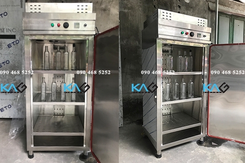 Thiết bị Sấy chai, Máy rửa chai 12 vòi được thiết kế độc lấp, sử dụng phổ biến trong ngành thực phẩm, dược phẩm. Thiết bị sấy rửa chai của KAG phù hợp với các cơ sở sản xuất nhỏ, vốn đầu tư không nhiều.